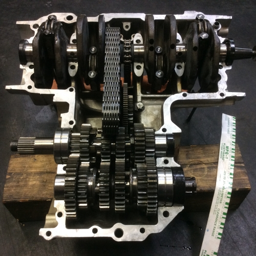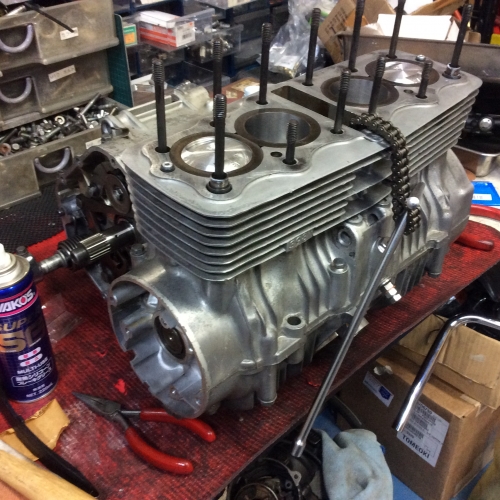 腰下の組み立てもあと少し。カムチェーンテンショナー周りに不具合が多く一部ワンオフで作り直したりアゲインさんの部品を使用して直します。結構手間かかりました~